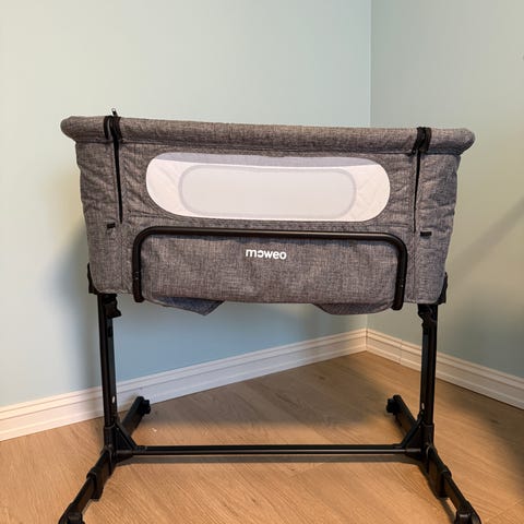 Selger en svært pent brukt Moweo RIVER Mini Bedside Crib, Mørkegrå som fremstår som ny. Denne er av typen mini så den tar lite plass både på soverommet og i stua.