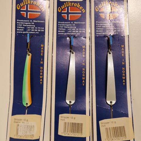 2 x 6-pak. 10 gram og 2 x 6-pak. 7 gram Sølvkroken Spesial sluk. En klassiker som er ett førstevalg til ørret. Du får også med en 6 - pak. med ferskvannssluker (7 gram) og to Sølvkroken Pinjong 3,5 gram. Veil. pris på dette er over 2.000,- så her gjør du ett røverkjøp.