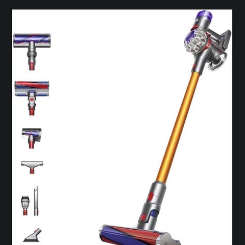 Dyson støvsuger med orange skaft. Kjøpt i august 2022 på power.