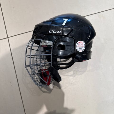 CCM ishockeyhjelm i hvit farge. Hjelmen er designet for ishockey og gir beskyttelse under skøytesporten.