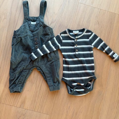 Alt er i str 62 unntatt blå snekkerbukse som det står 68 på lappen, men vil si den er mer 62.
