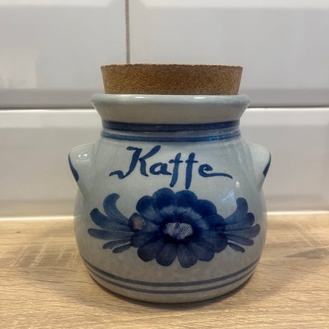 Kjempefin serveringskanne i keramikk, av merket Aksini blå blomst Danmark selges. Hel og pen.