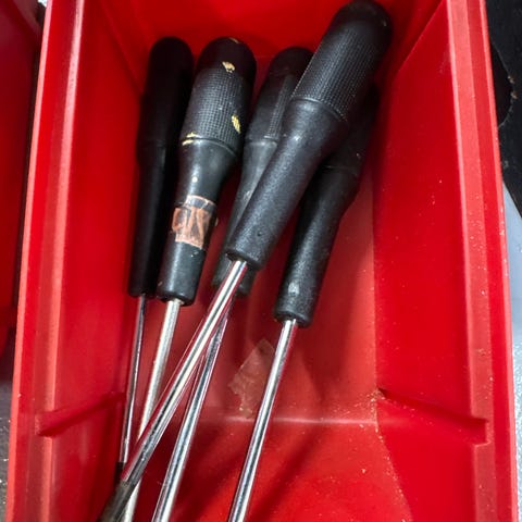 Wera skrutrekkersett med røde plast håndtak. Settet inneholder flere skrutrekkere med metall skaft og rød plast håndtak. Egnet for ulike skruejobber.