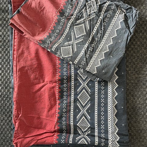 Selger 2 stk. grå Mariusmønster sengetøy som er lite brukt, da de har vært på en hytte. Framstår som ny utenom 2 små flekker (se bilde nr. 4). Ikke prøvd å fjernes utenom en vanlig vask i maskina.
