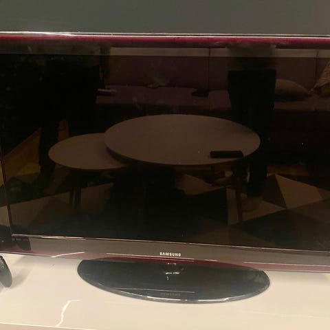 Panasonic TV med tilhørende fjernkontroll. Passer til bruk i hjem eller kontor. Inkluderer strøm- og tilkoblingskabler.