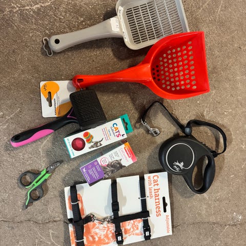 Kjæledyrpleiesett til katt med negleklipper og børster i rosa