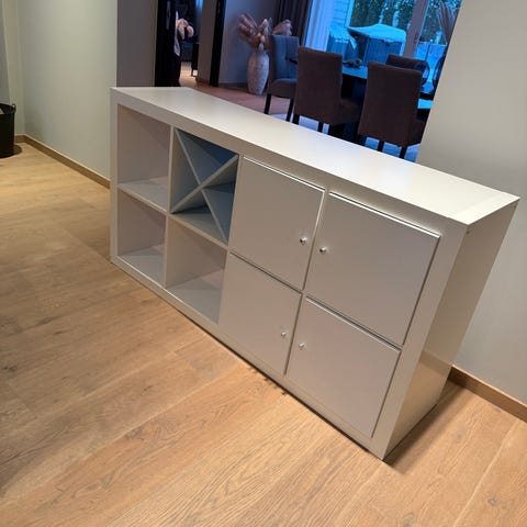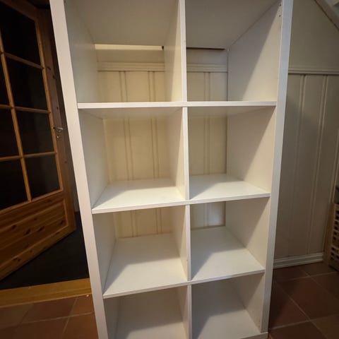 To pent brukte IKEA Kallax hyller selges rimelig grunnet flytting. De kan fint brukes ved siden av hverandre eller over hverandre for å få en høyere hylle. Kommer med integrerte skuffer.