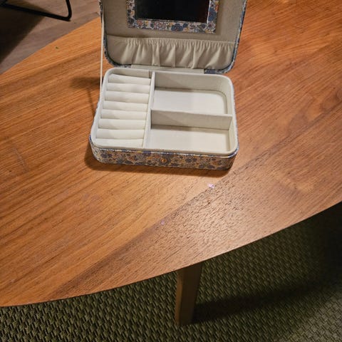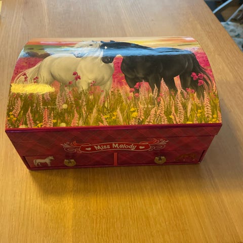 Myk innside som beskytter smykkene godt. Lukkes med trykknapp. Pent brukt og i god stand (se bilder).