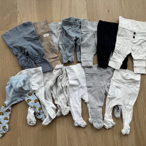 Selger en flott pakke med babytøy i nøytrale farger. Klærne er pent brukt og i god stand, uten flekker eller hull (røyk- og dyrefritt hjem).
