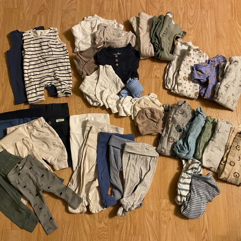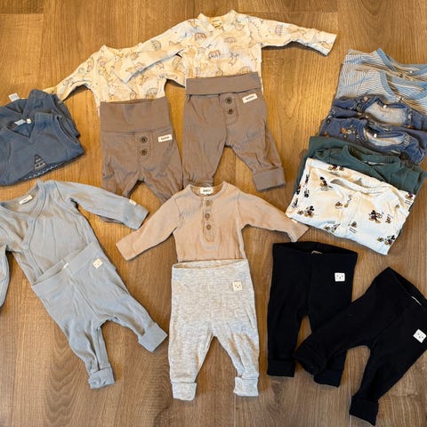 Materialene er myke i bomull og egnet for spedbarn. Selges samlet til halv pris!