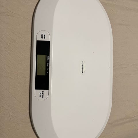 Selger en babyvekt som er super å ha hjemme de første månedene.