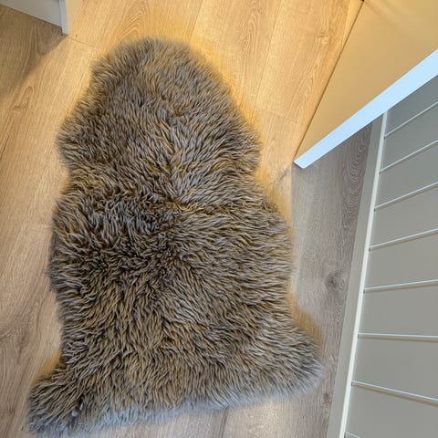 FÅRDRUP teppe i grå farge. Teppe med uregelmessig form og myk tekstur, egnet for bruk på gulv i ulike rom. Selger HBO 200kr.