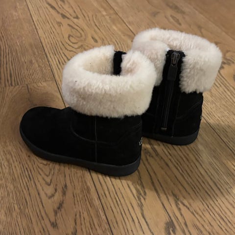 UGG barnestøvler i størrelse 25 til jente. Støvlene er røde og har myk innside. Yttersålen har mønster for bedre grep