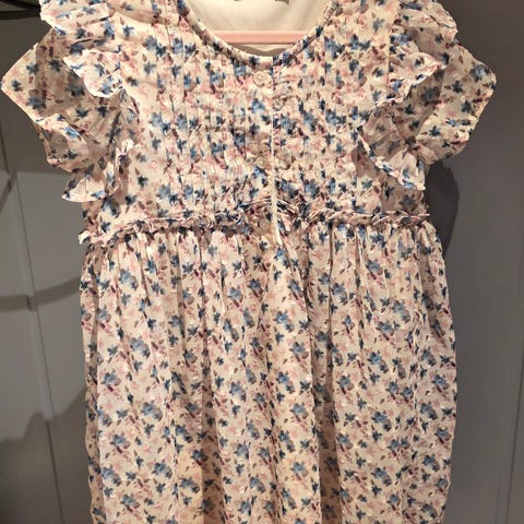 Kjole i dus rosafarge i str 110/5 år. Behagelig stoff, fin til både hverdags og fest. Brukt noen få ganger. Uten anmerkninger.