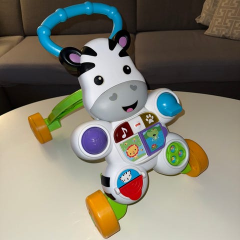 Pent brukt Fisher Price Learn with Me Zebra Walker - lær-å-gå vogn med aktiviteter, lys og lyd. Lydene er på polsk.