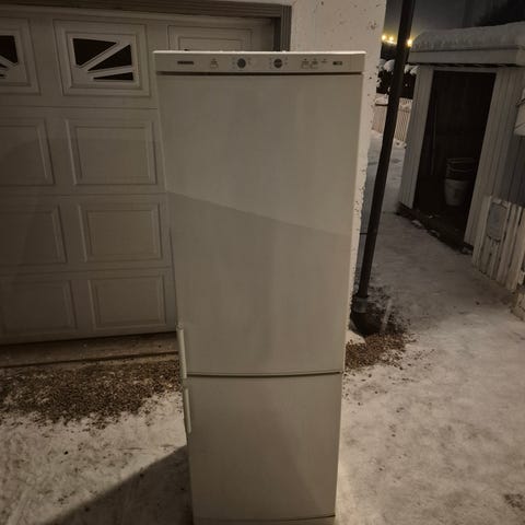 Electrolux kombiskap med kjøleskap øverst og fryser nederst. Hvitt design med flere hyller og skuffer for oppbevaring.