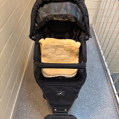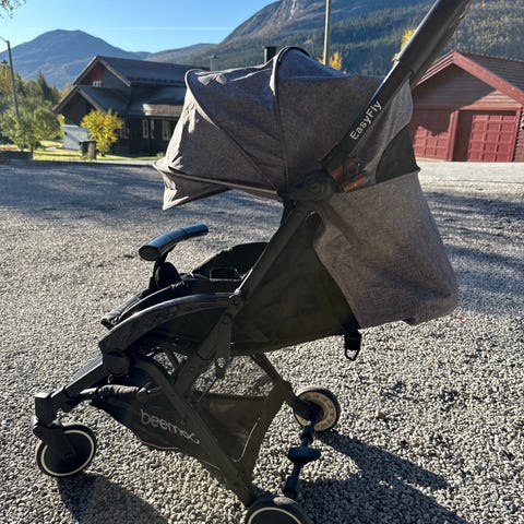 Beemoo EasyFly vogn selges. Den blir veldig liten sammenslått. Låsen som holder vogna sammenslått er litt ødelagt, men den sitter.