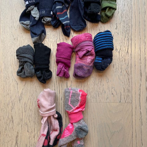 Pakke med sokker ca str 27-30. Mange er ubrukt.