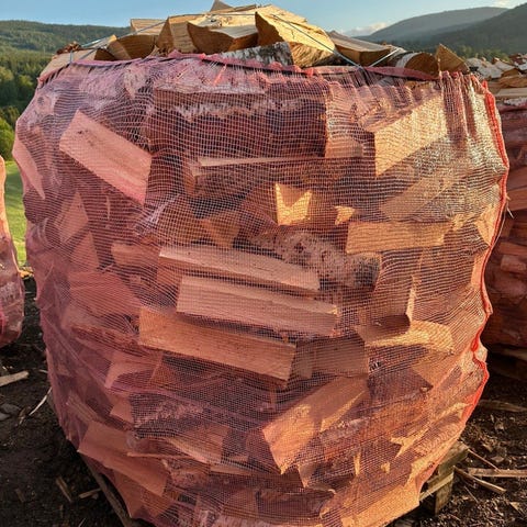 Selger tørr 1000L Bjørkeved sekker, pris 1600,-