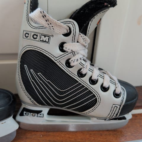 Bauer ishockeyskøyter for barn i størrelse 26. Skøytene er designet for ishockey og har hvit og svart farge. Dette er en 2 år gammel skøyte, men desverre brukt kun 5 ganger. Meget god kvalitet fra Bauer, funker til både hockey og lek på frossent vann.