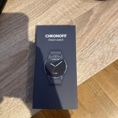 Chronofit Smartklokke i svart farge. Inkluderer ladekabel og brukermanual. Designet som en smartklokke med rund urskive og silikonreim.