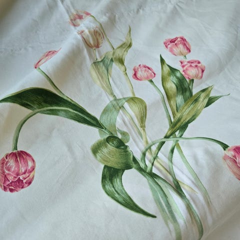 Selger et eksepsjonelt vakkert, tosidig bomullsstoff fra Italia, i brune og naturfargede toner med dekorativt, klassisk mønster. Stoffet har et tidløst og elegant uttrykk og fremstår som svært gjennomført i kvalitet og utførelse.