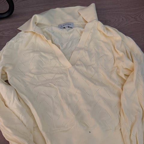By Malina genser i størrelse XS. Genseren er lilla og laget av ull og mohair.