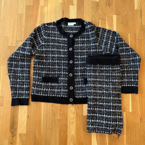 Donna Cardigan i flerfarget ull og mohair, størrelse XS. Cardiganen har knappelukking foran og er laget i et mykt og varmt ullmateriale.