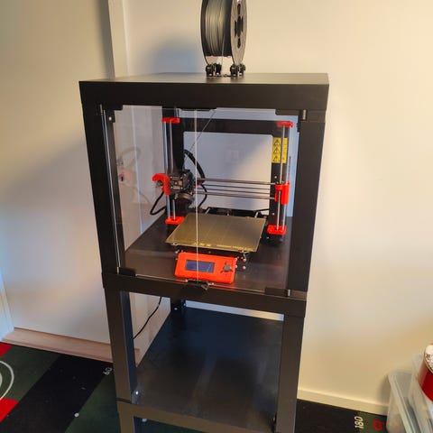 Selger min Prusa i3 MK3S 3D-printer med sort ramme og oppvarmet byggeplate. Inkluderer wifi kamera for overvåkning av print (får strøm fra printer), helt ny Textured Build Plate, originalt assesories kit og flere ekstra ekstruderdyser i forskjellige størrelser (Messing 3x0,4mm & 3x 0,6mm, Rustfri 1x0,4mm 1x0,6mm & 1x0,8mm).