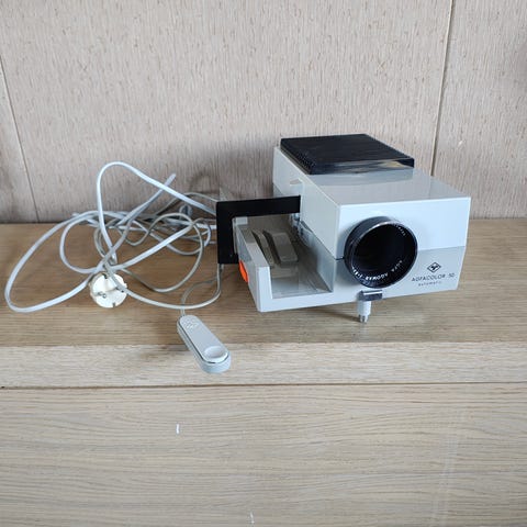 Gammel bildeviser. Butikken jeg kjøpte den i har funksjonstestet og sa den var OK. Har ikke funksjonstestet selv.