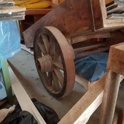 Dette er en veldig gammel arbeids hestevogn som har stått i stallen og støver ned.