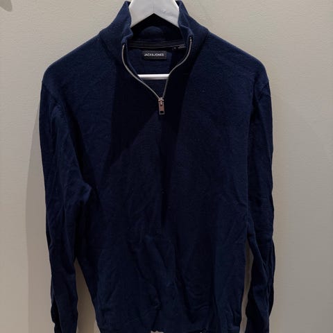 Jack & Jones Premium genser i størrelse L for menn. Genseren er grå og laget av bomull. Den har rund hals og ribbestrikkede kanter ved ermer og nederkant.