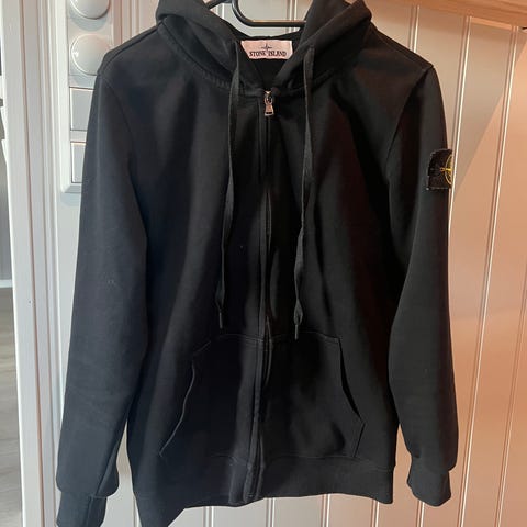 Stone Island x Supreme hettegenser i brun farge, størrelse S for herre. Laget av bomullsmateriale. Genseren har hette og klassisk Stone Island logo på ermet.