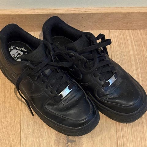 Nike air force i størrelse 38. Skoene er svarte og meget pent brukt. Kjøpt i London 2024.