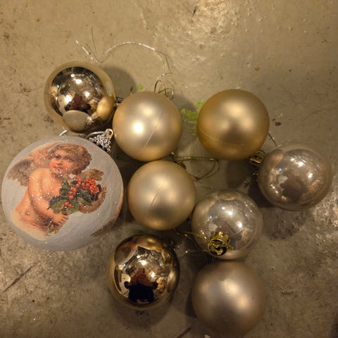 Massiv gips/betong nissefigur i tradisjonell rød og hvit drakt med svart belte og brune støvler. Ca 60 cm høy og veier 15,5 kg. Figuren står på en rund base med signatur. Passer som dekorasjon i julen.