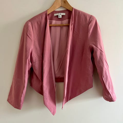 Blazer i størrelse S, rosa. Laget av polyester, viskose og elastin.