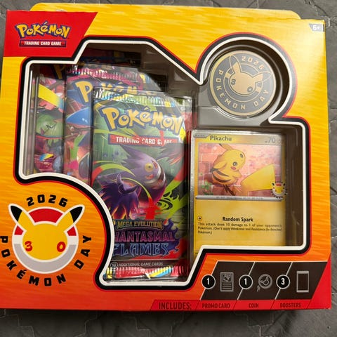 Pokémon 2026 Pokémon TCG Samlesett inneholder 1 Pikachu foil-kort, 1 Pikachu mynt, 1 Pikachu pin, og 3 Pokémon TCG boosterpakker. Settet markerer 30-årsjubileet for Pokémon-serien og er designet for samlere og spillere.