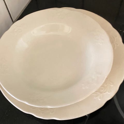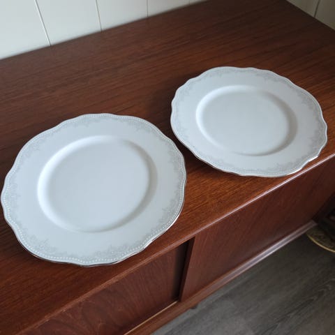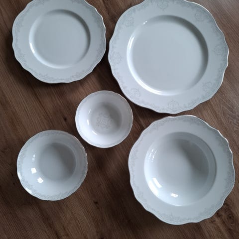 Rosenthal Sanssouci White kaffekopp og skål i hvitt porselen. Kaffekoppen har en klassisk design med tilhørende skål, begge med dekorative detaljer. Passer til servering av kaffe.