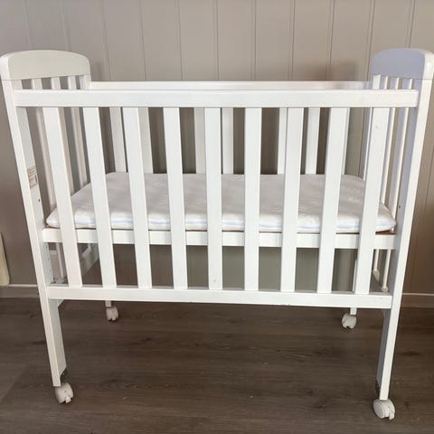 Selger en lite brukt bedside crib kjøpt i 2022. Lite brukt til 2 barn. Fungerer som den skal, noen bruksmerker(se bilder). Følger med en ubrukt madrass fra yngri, kjøpt i 2025.
