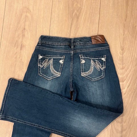 Mørkeblå denimjeans med markante kontrastsyninger i hvid. Jeansene har et råt, let vasket look og en dekorativ inderside i linningen med paisley-mønster, som giver et cool og detaljerigt finish. Klassisk lukning med knap og lynlås samt bæltestropper. Et par jeans med kant og karakter – perfekte til både hverdag og casual brug.