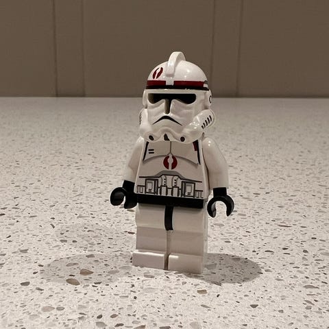 Veldig pent og nytt eksemplar av den eldste 327th Star Corps Troooer minifiguren.