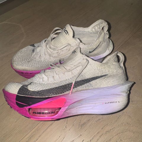 Nike Alphafly Løpesko str 37,5 hvit og rosa. Magiske å løpe med