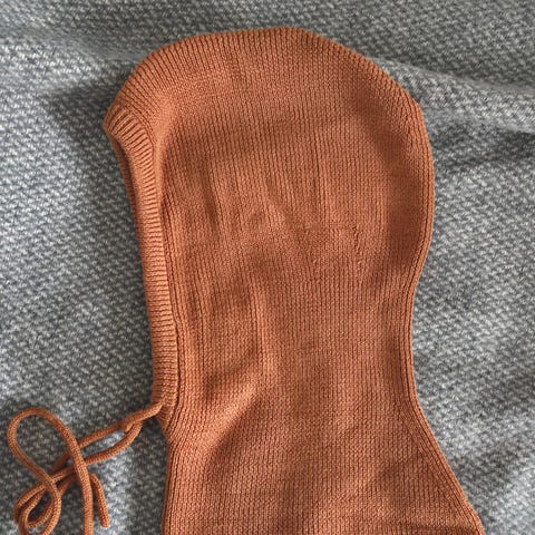 Ubrukt balaclava i ull selges. Den er ikke i produksjon lenger.