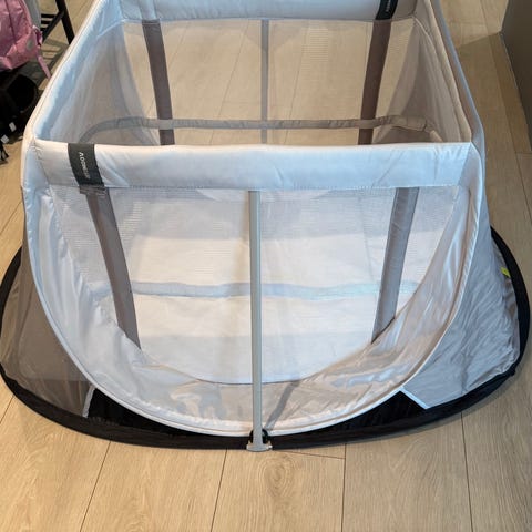 Veldig praktisk og brukervennlig reiseseng fra Titaniumbaby i fargen grå. Sengen er enkel å både slå opp og legge sammen. Oppbevares i praktisk transportbag med bærehåndtak. Kun brukt et par ganger.
