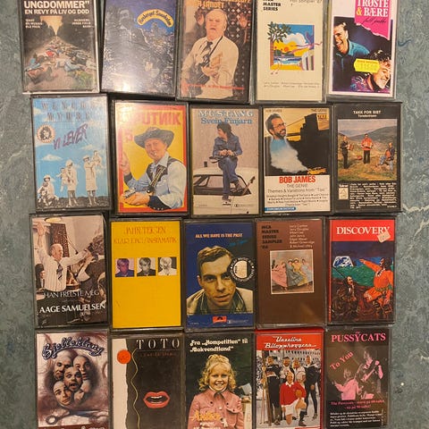 Samling av ulike kassetter med varierte musikkalbum og artister. 244 stk. Gi bud.