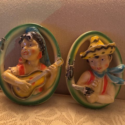 2 flotte vintage vegg bilder i porselen fra Japan, er fra 70 tallet. Finnes i flere motiver.