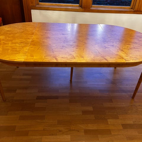 Spisebord 125, klaffer 50 cm, 8 stoler kr 1.500