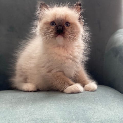 Mateas er født 07.03.2025 og er i dag snart 11 måneder gammel. Han har en vakker brun bicolour farge og er en søt, rolig og svært kontaktsøkende gutt med et mildt og vennlig temperament. Han elsker nærhet, kos og menneskelig kontakt, og er vant til å være en naturlig del av familien.