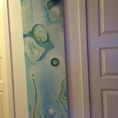 Signert maleri av E. Evjen med landskap og foss