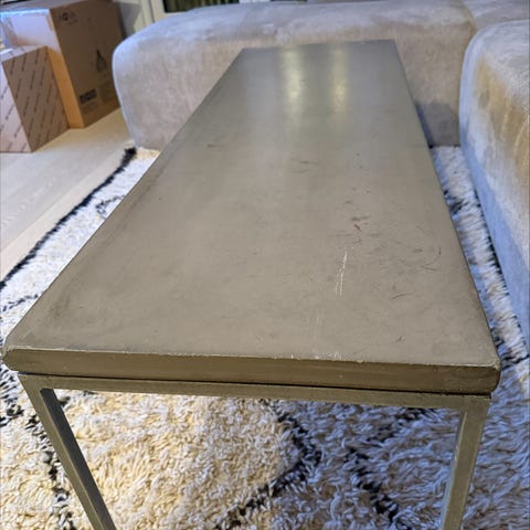 Bord fra merket Indoor/Outdoor i fiber betong kjøpt 2014 på interiørbutikk på Skøyen.